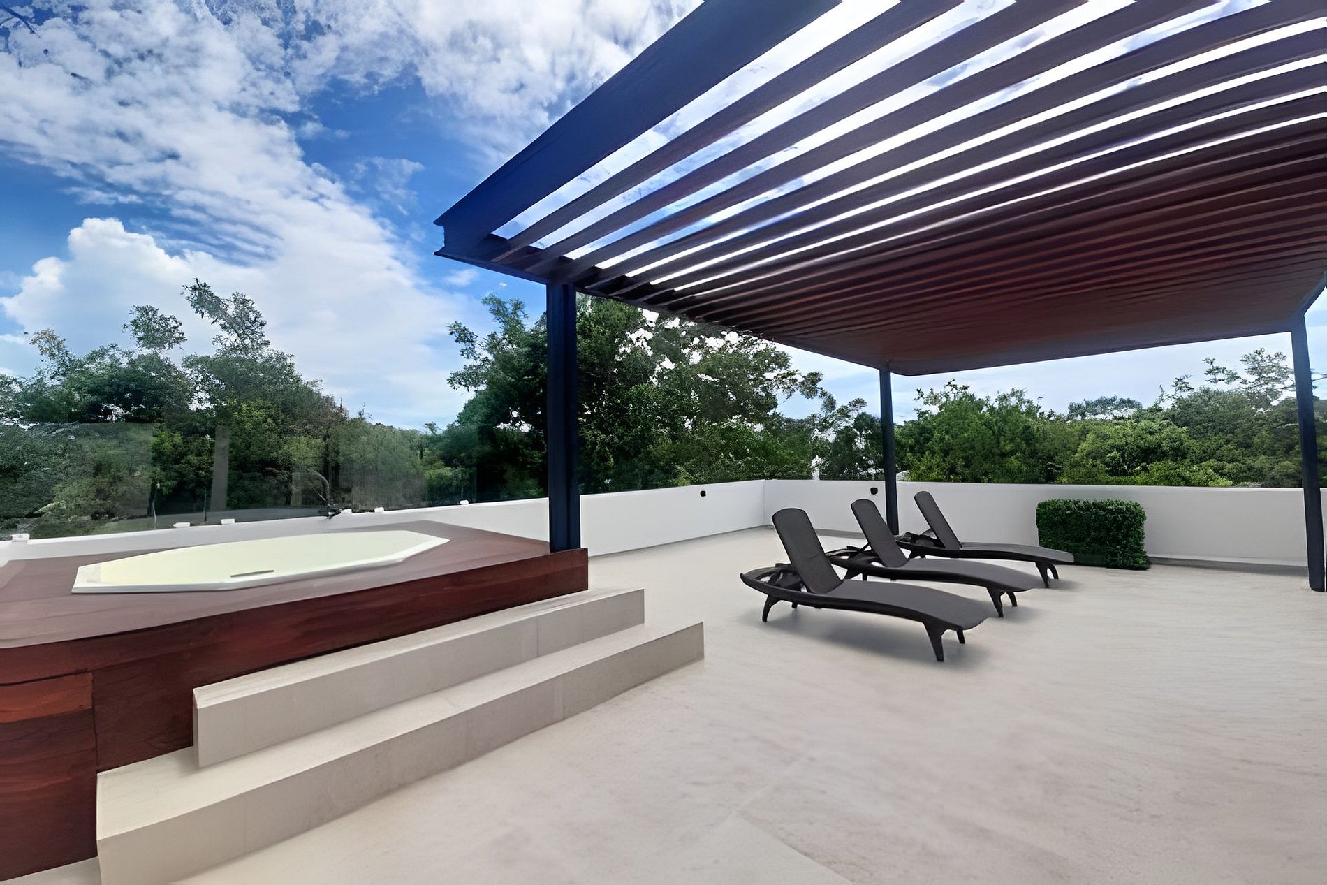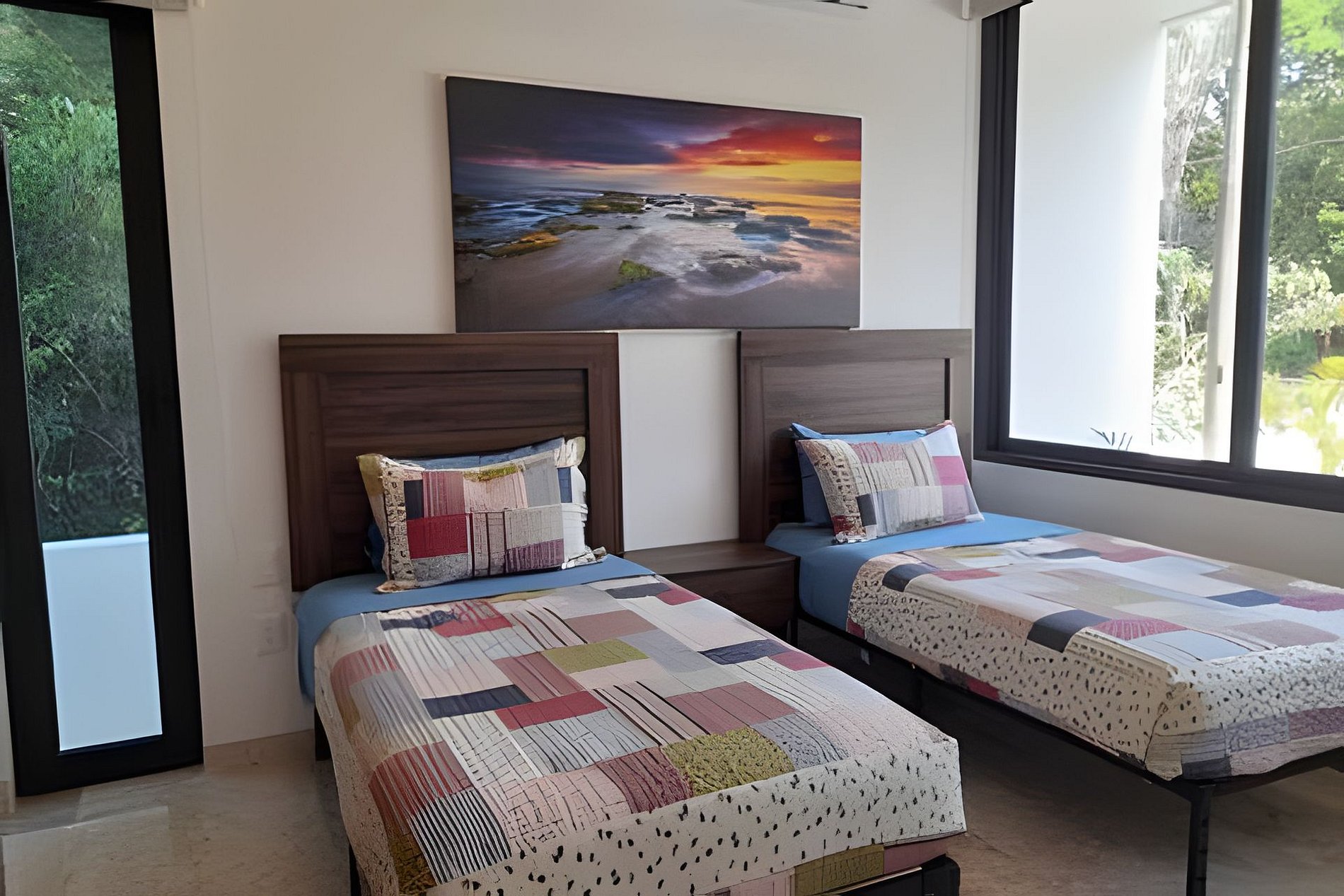 Our home is beautiful... Casa Aak(Aak means turtles in the Mayan language) has a wide open floor plan that leads to a beautifully designed kitchen. Maybe you want to spend the day with family and friends enjoying the outdoor living area. Your pool is located right off of the pocket sliding glass doors that disappear. The outdoor area has your own grill to cook whatever your taste desires. The first floor is perfect for your family to make lasting memories. Also, you will find on bedroom on this lower level with 2 twin beds.