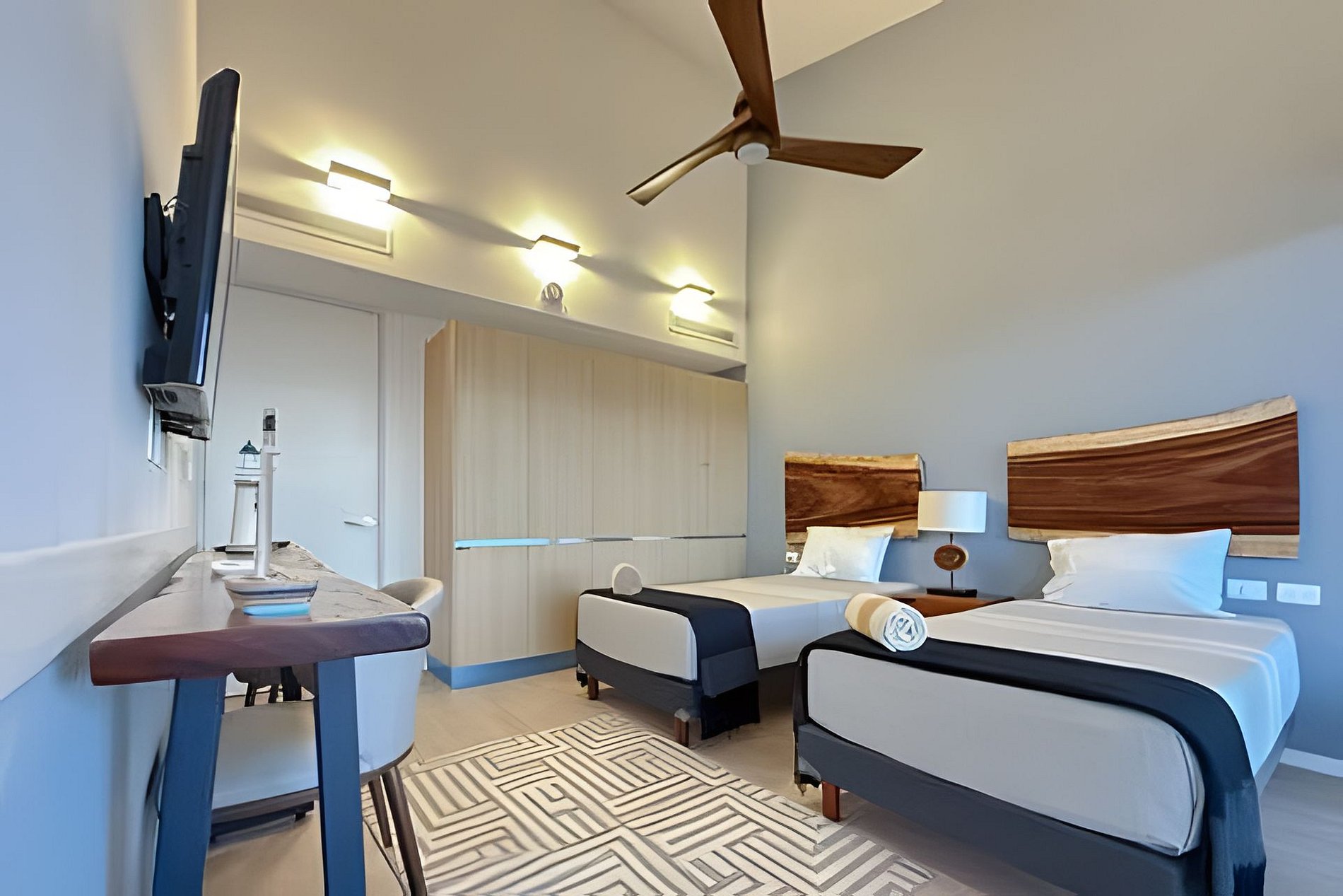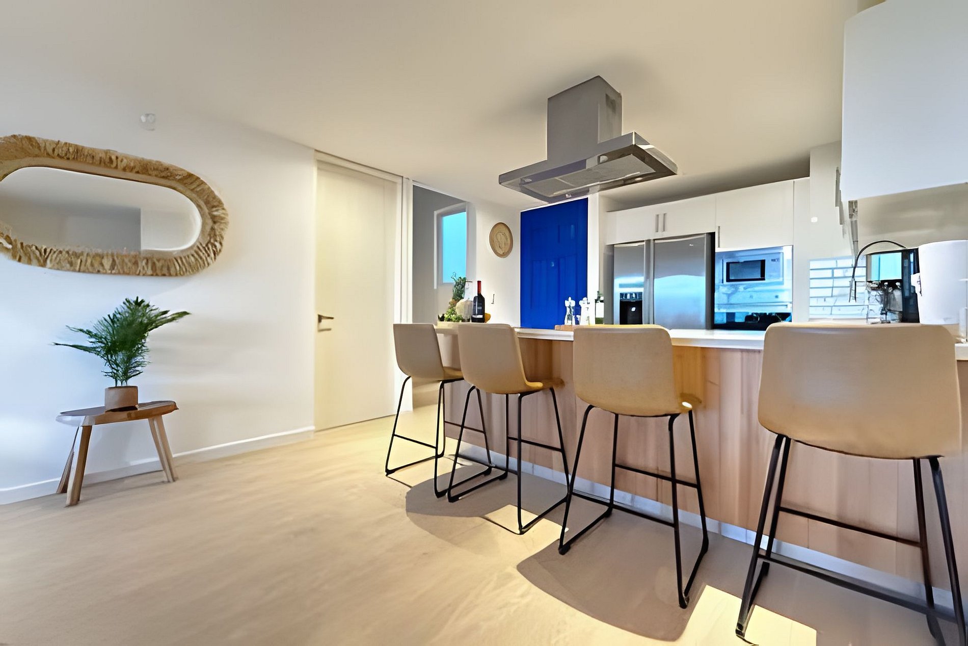 Blue House #303 is a modern 3-bedroom, 3-bathroom condominium facing the peaceful marina of Puerto Aventuras. It offers spacious interiors, complete privacy, and a subtle sense of luxury within one of the most exclusive residential communities in the Riviera Maya. Stylishly decorated and private, it features a fully equipped kitchen, terrace, washer/dryer, and access to a private rooftop with pool, fire pit, gym, elevator, and 24/7 security.