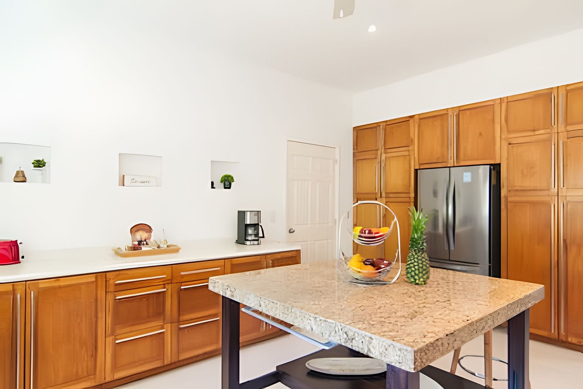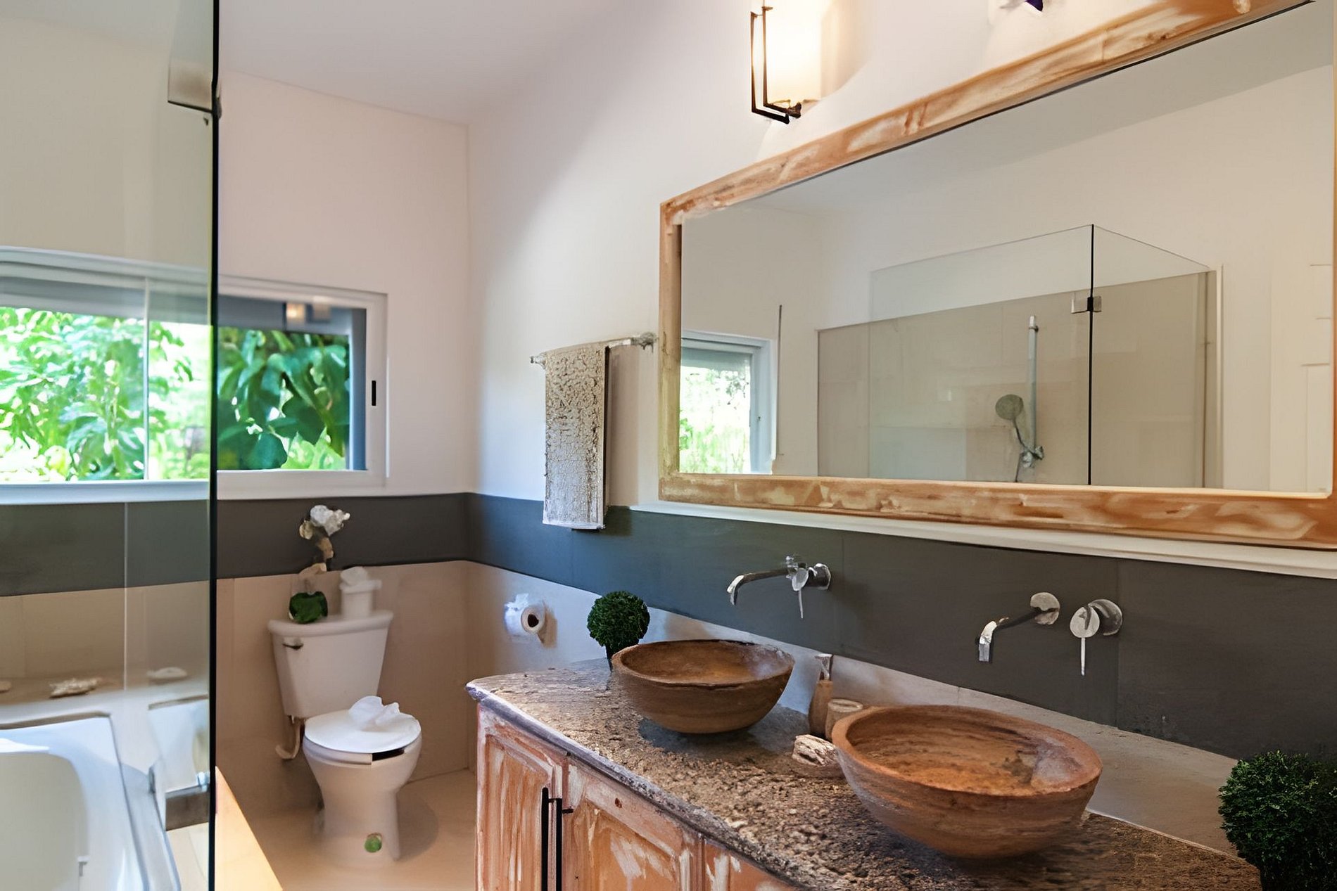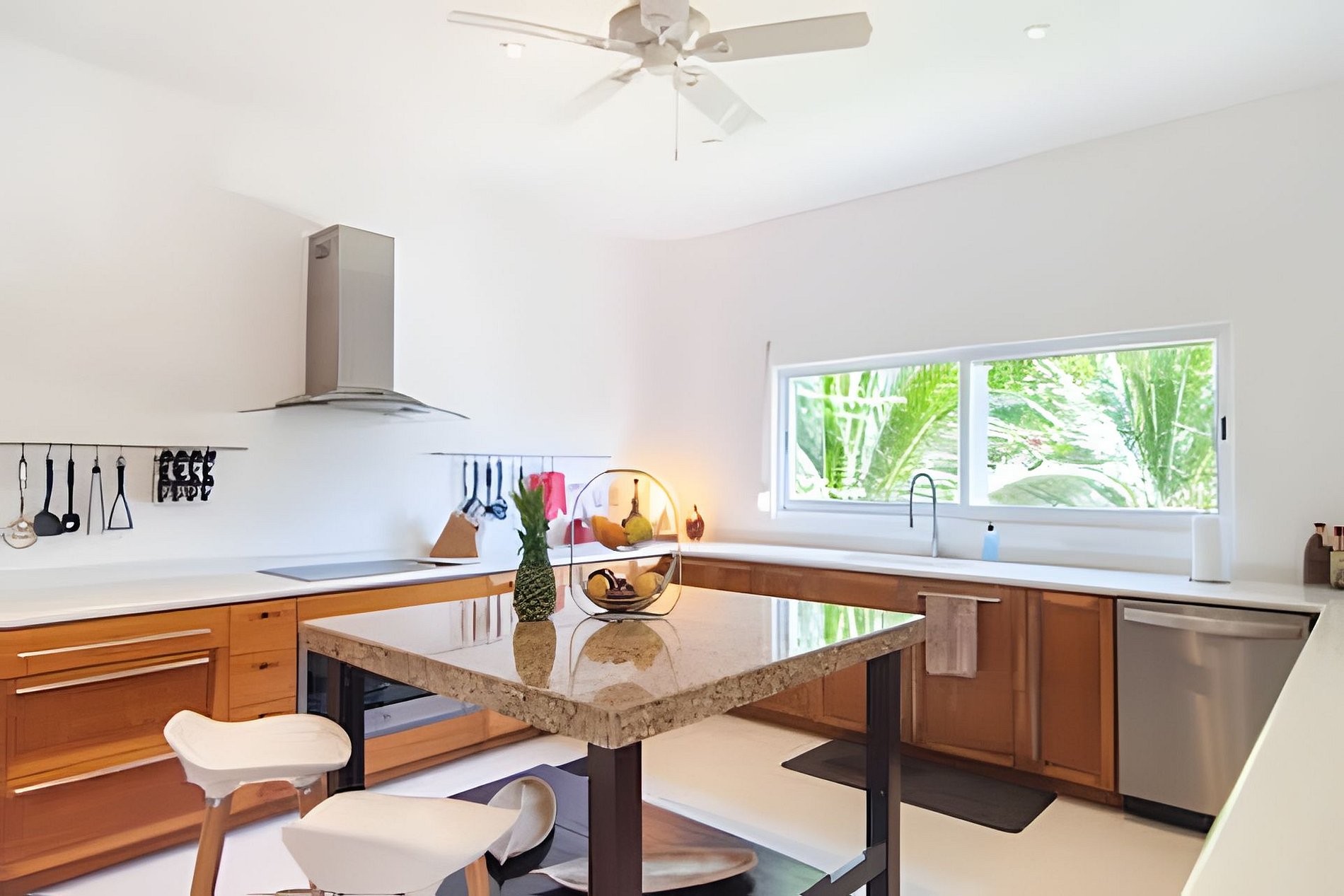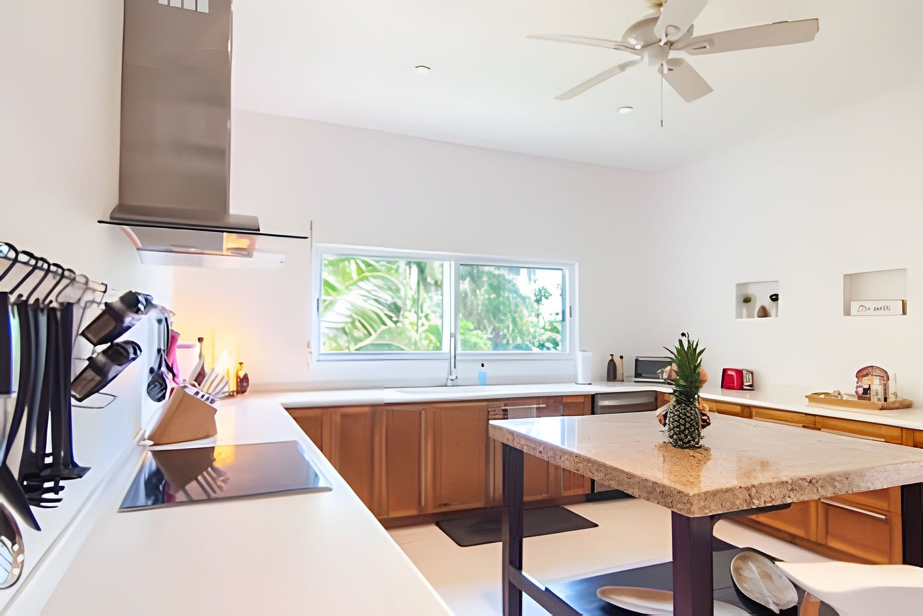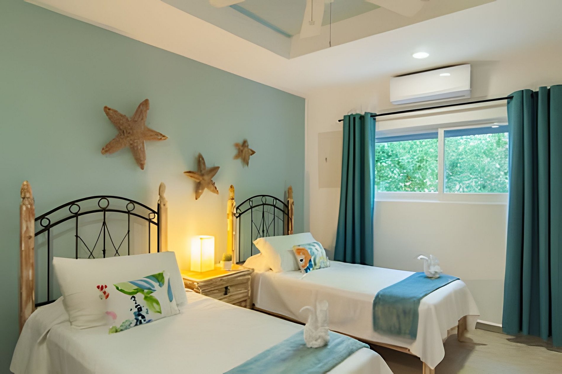 Cinco habitaciones bellamente decoradas, espaciosas y acogedoras. Las dos habitaciones principales ofrecen impresionantes vistas a la laguna, lo que permite a los huéspedes sumergirse en el exuberante entorno tropical y sentirse como en la proa de un lujoso crucero. Los dos baños en suite son igualmente impresionantes y espaciosos. La propiedad cuenta con tres habitaciones bellamente amuebladas en la planta baja, con dos baños completos. Es ideal para familias o grupos grandes y ofrece un alojamiento cómodo y práctico.