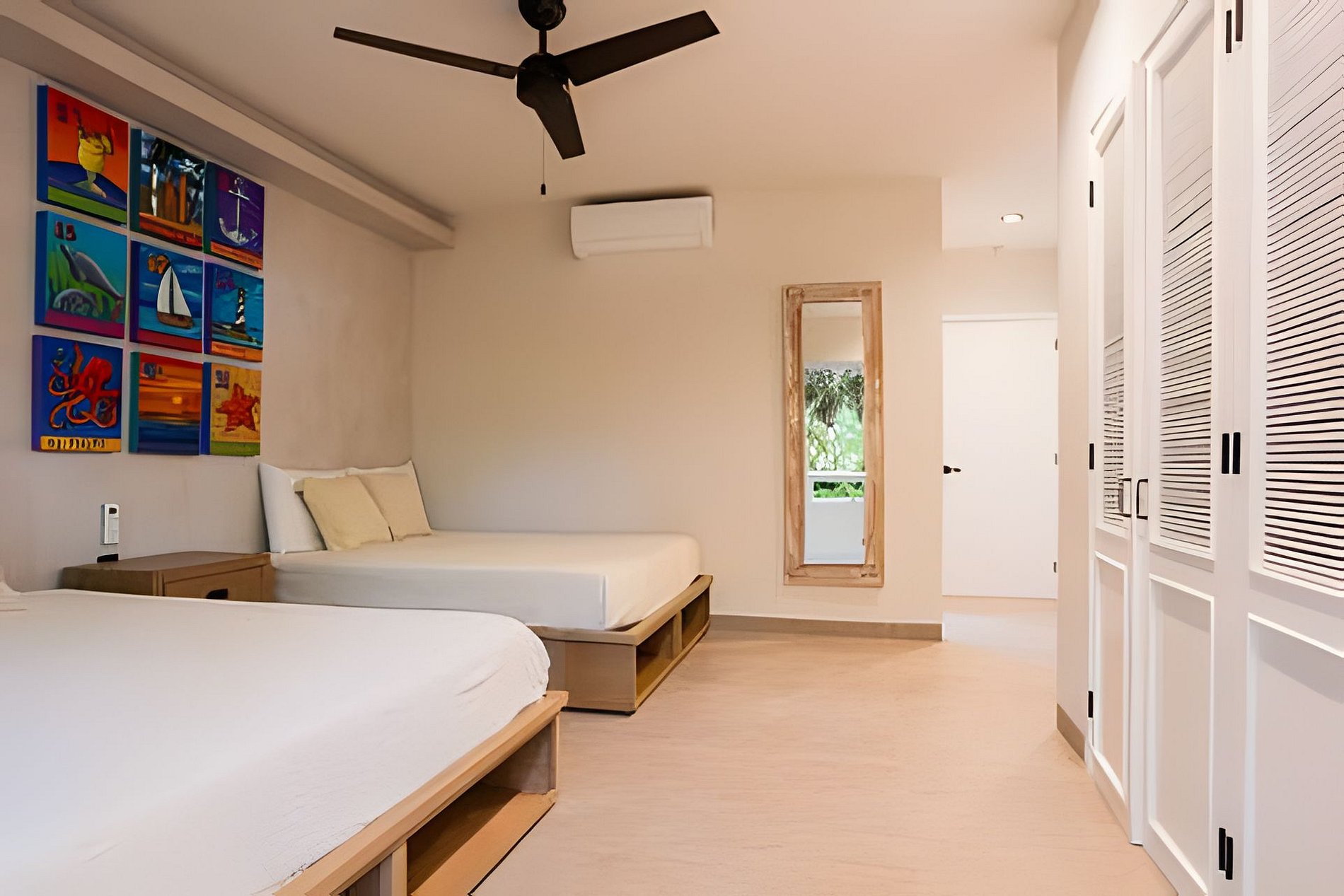 Tu alojamiento se encuentra dentro de Puerto Aventuras, una exclusiva comunidad cerrada y segura, reconocida por su ambiente tranquilo, limpio y familiar. Aquí todo está diseñado para que disfrutes de una estancia cómoda, relajada y rodeada de naturaleza, con acceso privilegiado a caminatas junto al mar, playas hermosas y áreas verdes.