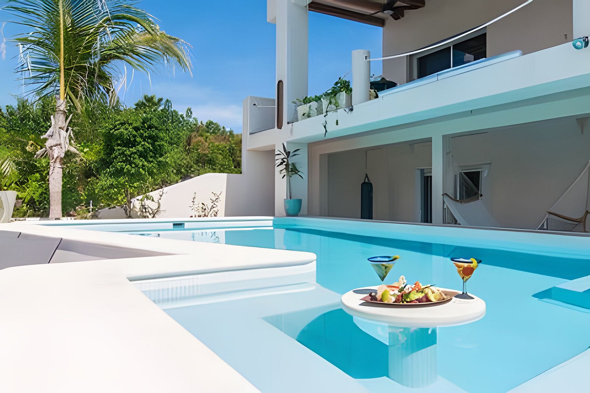 Prix basé sur une occupation double de 4 personnes maximum pour le niveau principal de la villa, comprenant les 2 chambres des maîtres avec vue sur l'eau, la cuisine, salle à manger et salon, toilette des invités, balcons, terrasses, et piscine. $35 USD/pers/nuit en supplément. Service de chef, massage et autres en supplément.