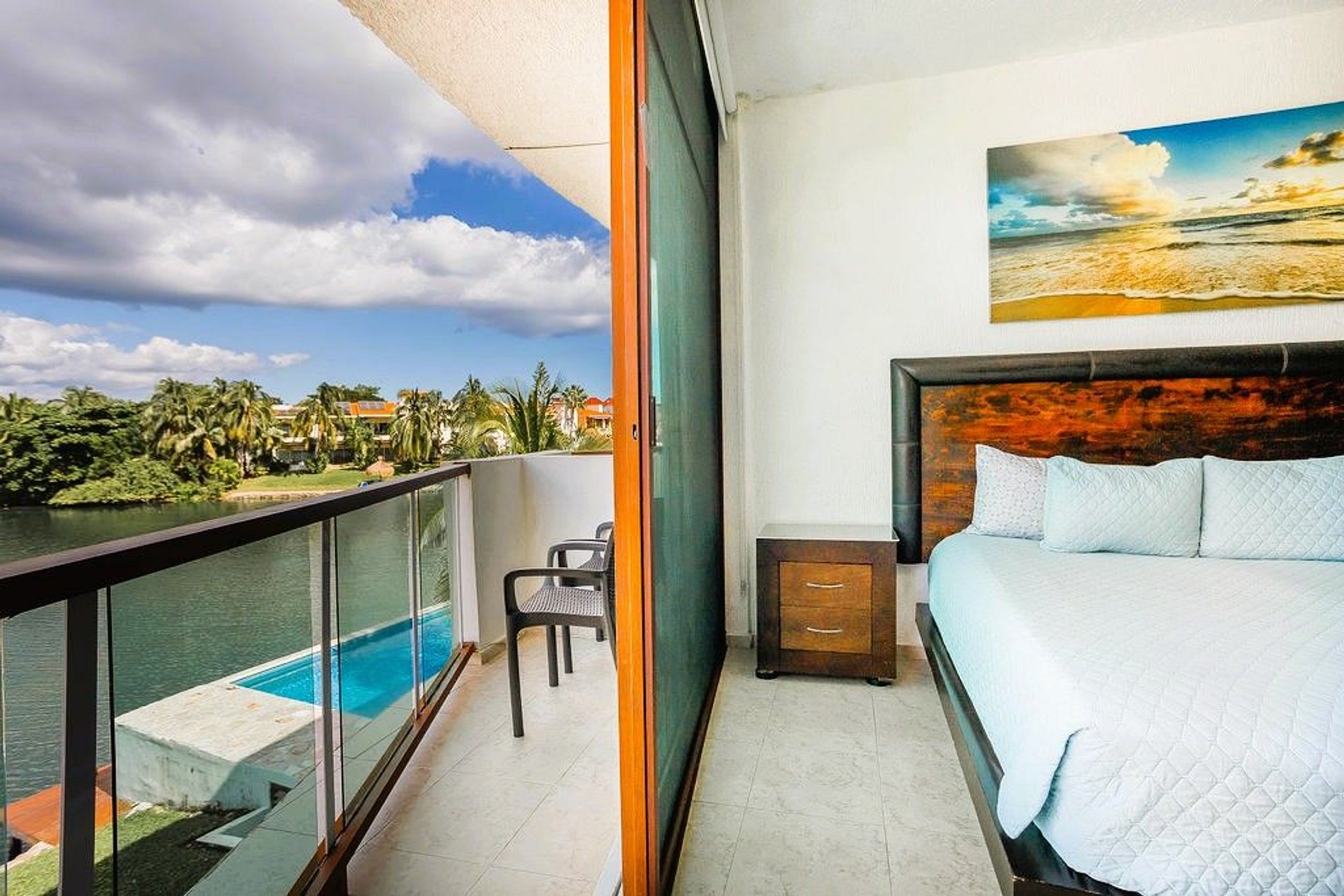 Très grand condo de 3 chambres et 2 salles de bain situé sur le magnifique lagon de Puerto Aventuras, à quelques pas de la plage. Tout est neuf à l'intérieur. Les fenêtres de la chambre principale et du salon s'étendent du sol au plafond. La vue est imprenable. Ce condo peut accueillir 7 personnes avec un lit king-size dans la chambre principale, un lit queen-size dans la deuxième chambre et deux lits jumeaux dans la troisième. Vous disposerez d'une cuisine entièrement équipée, d'un lave-linge et d'un sèche-linge. Savourez un café sur le balcon pour commencer la journée en admirant le lagon, ou un verre le soir en admirant le coucher de soleil. Si vous n'êtes pas à la plage (à seulement 90 mètres), vous pourrez vous rafraîchir dans la piscine située juste à côté du balcon. Embarquez pour une croisière en kayak sur le lagon ou profitez simplement de la bouée. Un excellent site de plongée avec tuba est à seulement 10 pas, où vous pourrez observer de nombreux poissons. Une voiturette de golf est disponible pour vous promener dans la communauté. Les voiturettes de golf sont généralement louées à partir de 50 USD par jour, mais nous en mettons une à disposition de nos clients pour 25 USD par jour. N'hésitez pas à nous contacter si vous souhaitez une voiturette. De nombreuses activités s'offrent à vous : nage avec les dauphins, golf, tennis, spa, shopping, pêche, parachute ascensionnel, plongée sous-marine, snorkeling et bien plus encore. Vous trouverez des dizaines de restaurants et des concerts tous les soirs. Notre résidence et Puerto Aventuras sont parfaits pour se détendre et ralentir le rythme. C'est une location idéale et abordable pour une courte ou une longue durée.