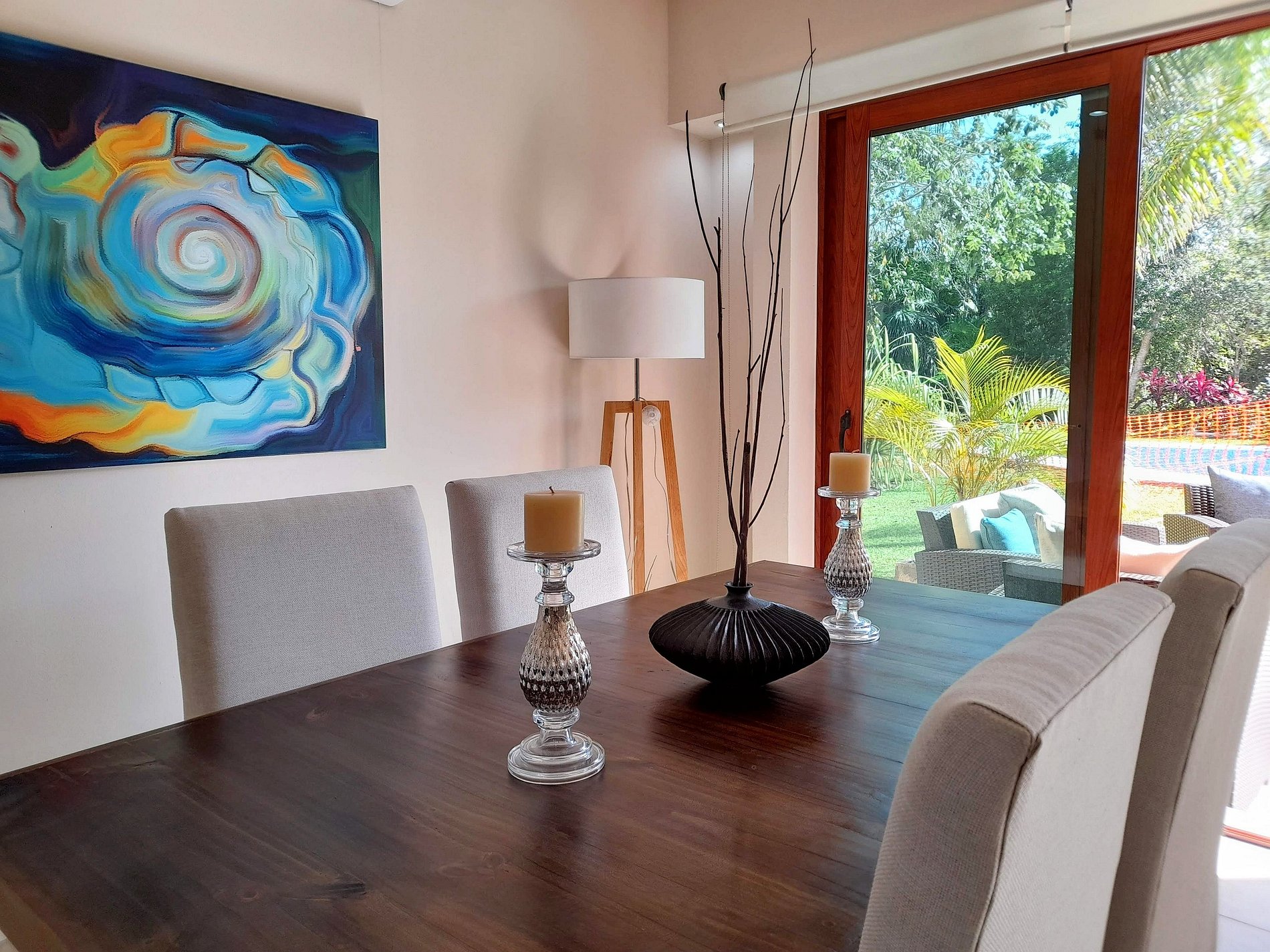 Salon et salle à manger spacieux, idéals pour partager des moments inoubliables en famille ou entre amis, entourés d’art, de textures naturelles et de lumière chaleureuse.